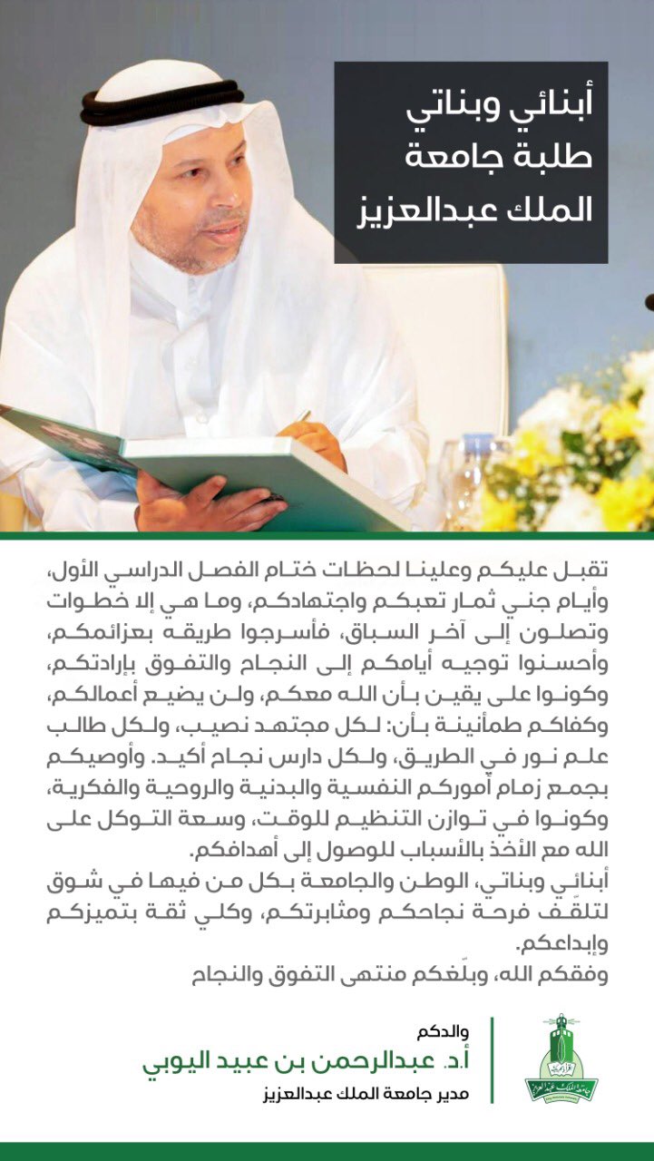 عميد شؤون القبول والتسجيل، جامعة الملك سعود من 12 /2 /1426 هـ. مدير مركز تقنية المعلومات جامعة الملك عبدالعزيز. وتأتي تلك الخطوة وفقا لتوجهات جامعة الملك عبدالعزيز في رقمنه الخدمات التعليمية. الاتصال هاتفيا ً على شطر الطالبات : ٤٧٠٠ جامعة الملك عبدالله للعلوم والتقنية.